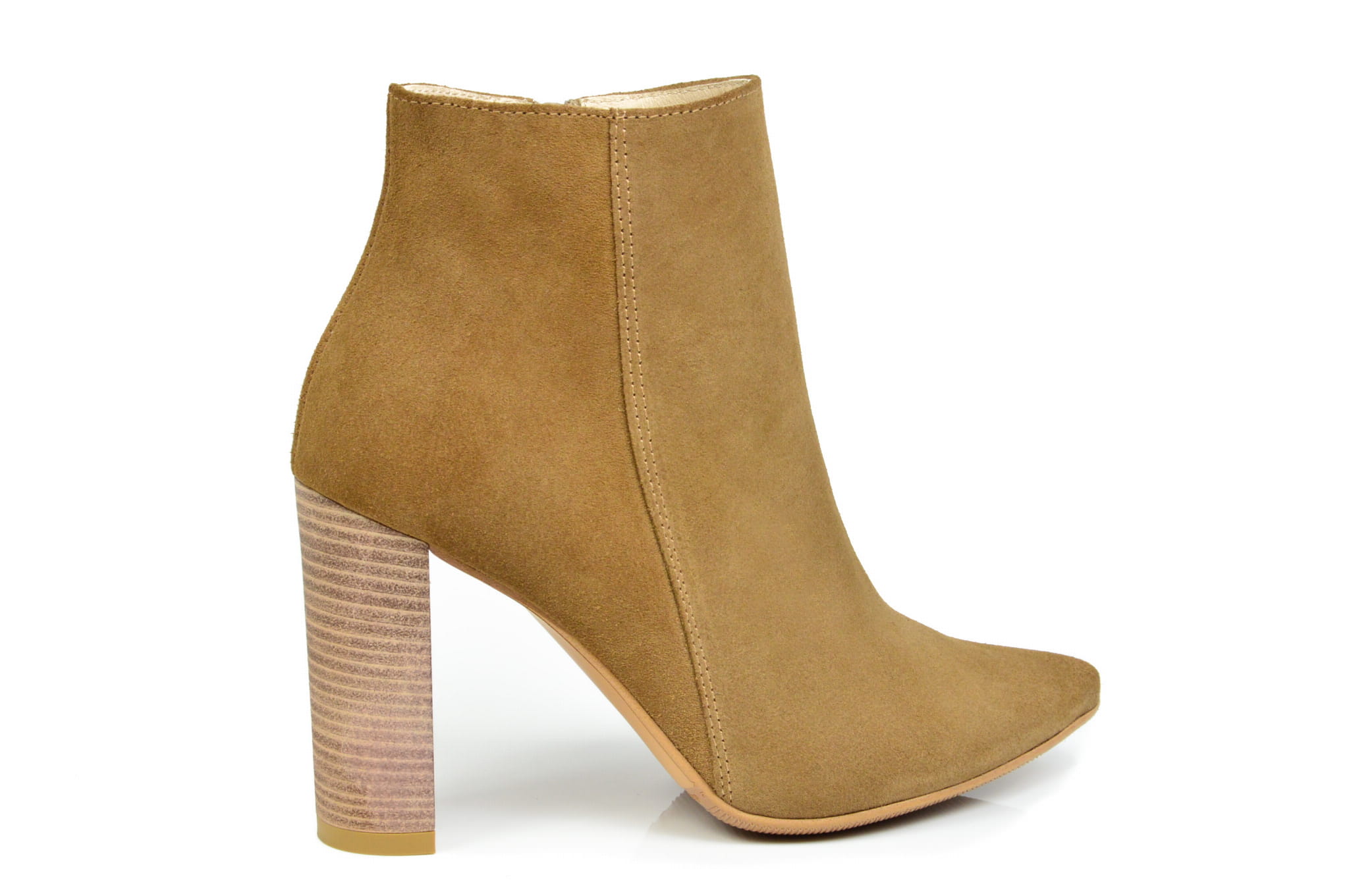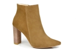 Rude botki na obcasie klocku skóra naturalna obcas imitacja drewna