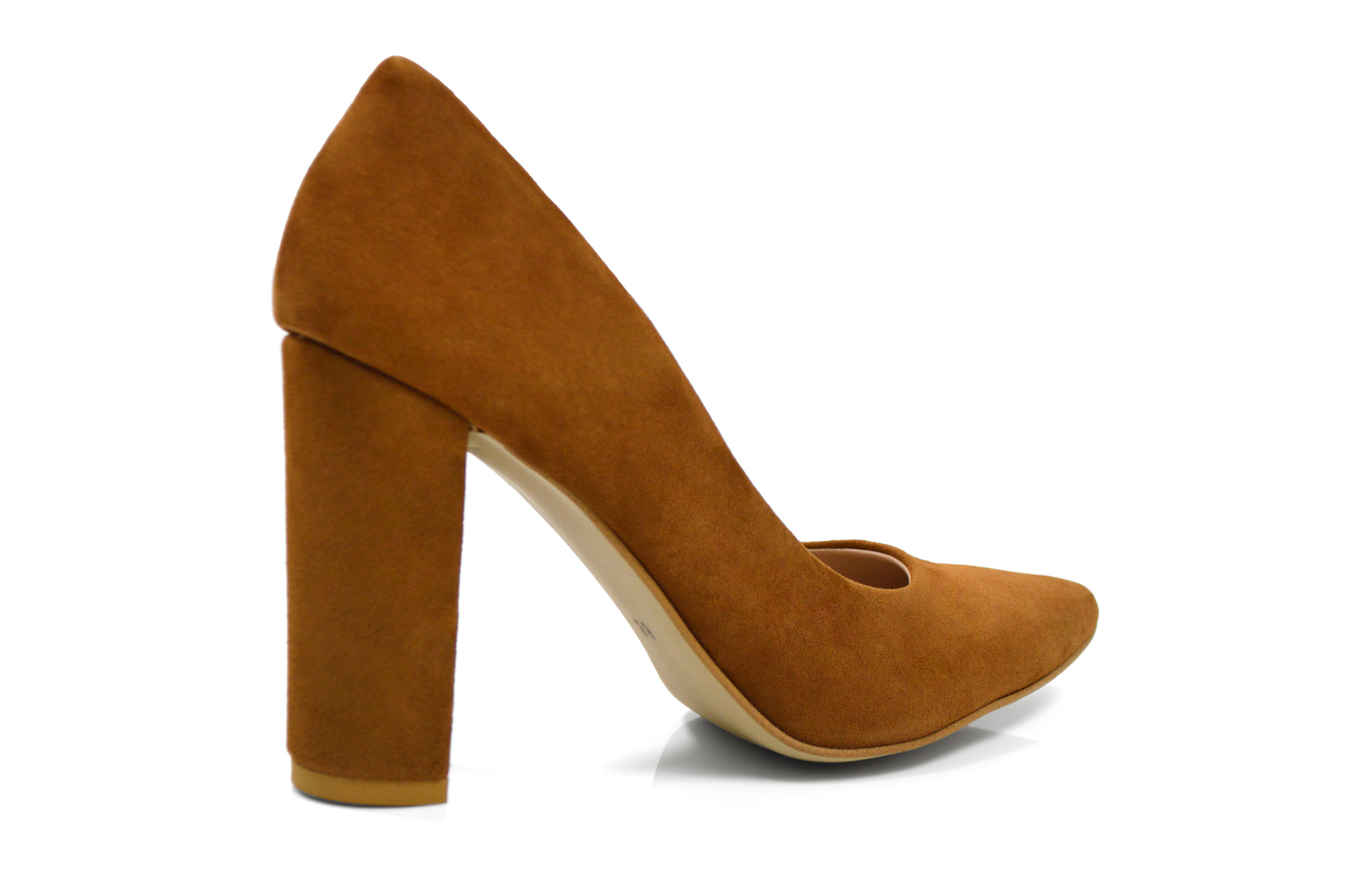 Czółenka na słupku rude, czyli komfort i stabilność na każdym kroku