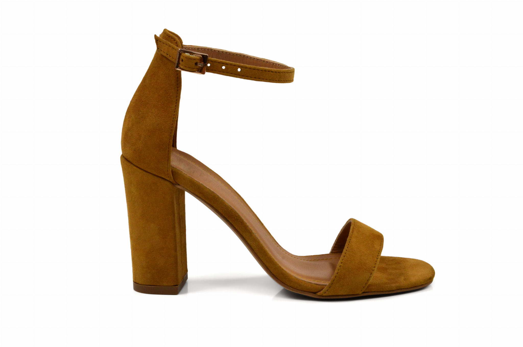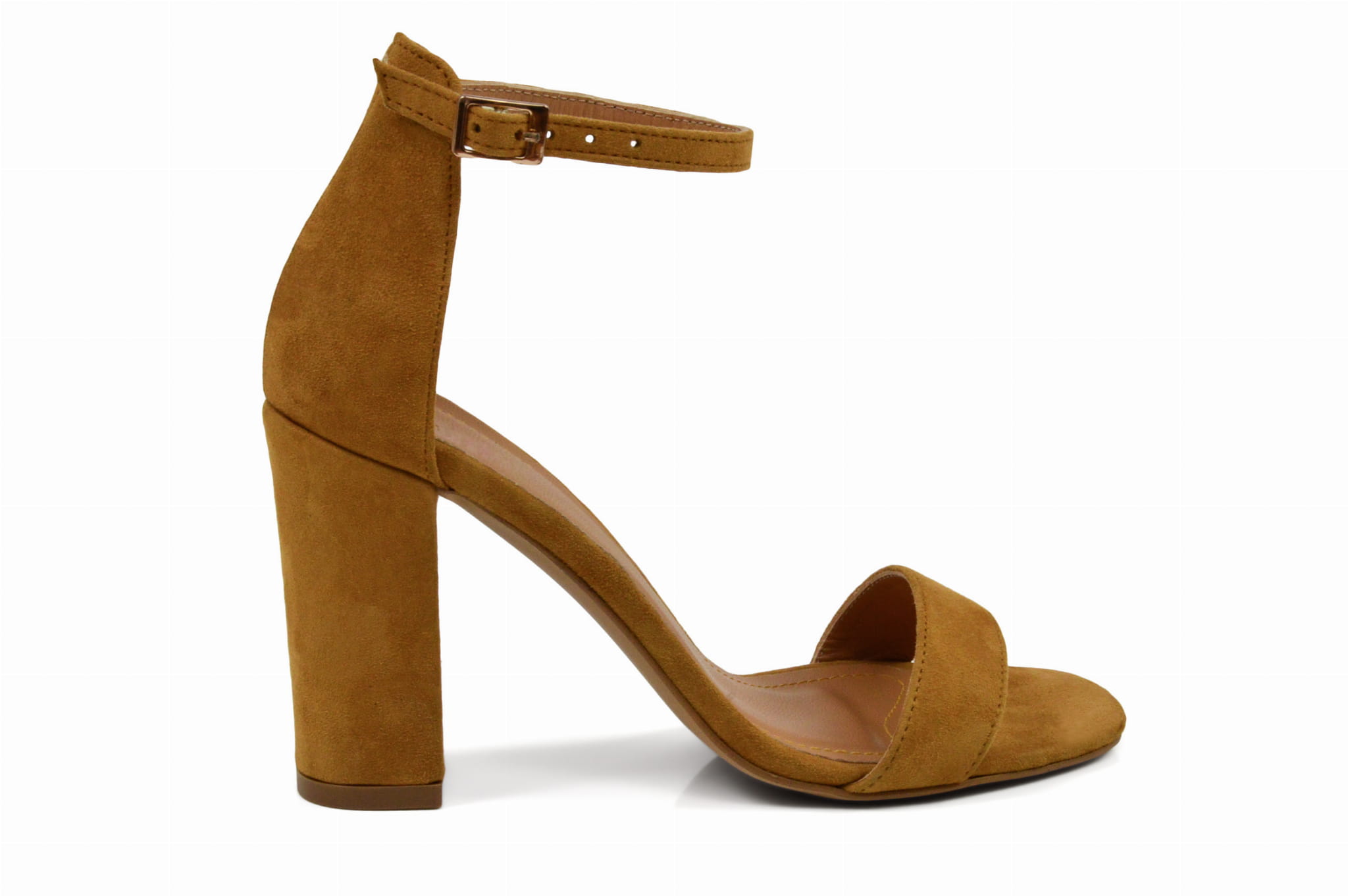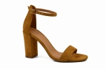 Eleganckie rude sandałki na obcasie słupku zapinane wokół kostki - skóra zamszowa. Sandałki na wysokim obcasie słupku to świetne rozwiązanie dla Pań, które cenią sobie komfort i elegancję. Obuwie wygodne i stabilne, będzie idealnym dopełnieniem każdej stylizacji.