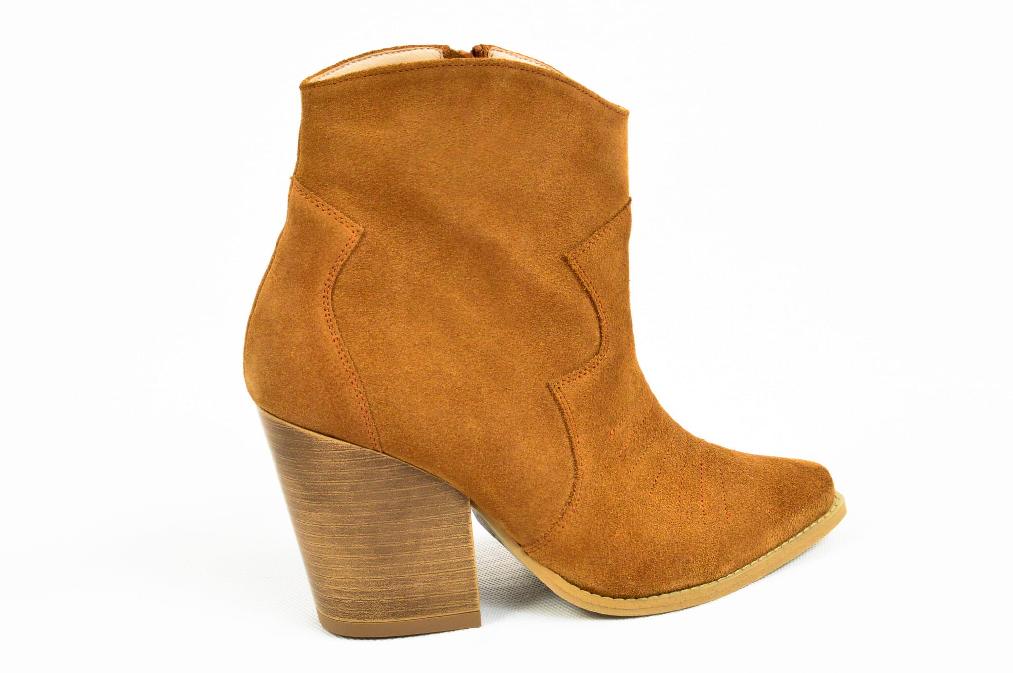 Rude skórzane kowbojki damskie od polskiej marki MargoShoes to wyjątkowy model, który łączy klasyczny design z wysoką jakością. Wykonane z włoskiej skóry naturalnej welurowej, posiadają praktyczny zamek po wewnętrznej stronie cholewki oraz drewniany obcas o wysokości 8 cm, który dodaje charakteru. Szpiczasty nosek podkreśla ich kowbojski styl, dzięki czemu te wygodne i stabilne botki będą idealnym dopełnieniem każdej stylizacji.