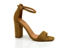 Rude zamszowe sandałki na obcasie słupku - skóra naturalna