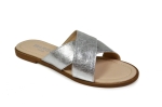 Srebrne klapki na płaskiej podeszwie - skóra naturalna