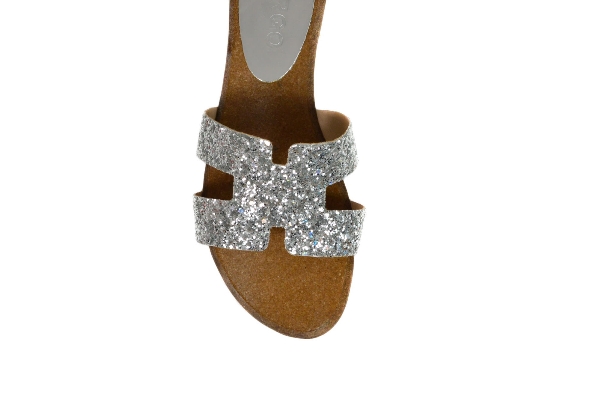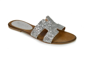 Srebrne klapki na płaskiej podeszwie - skóra naturalna