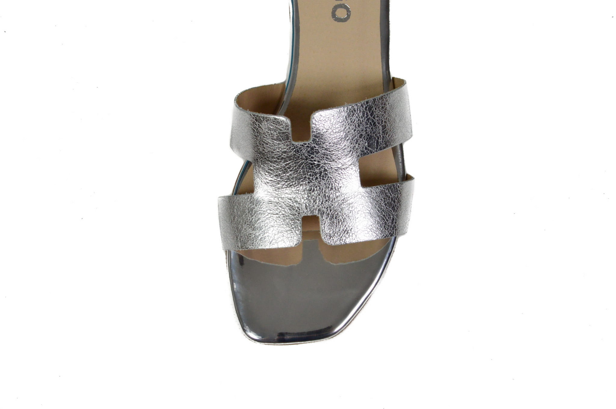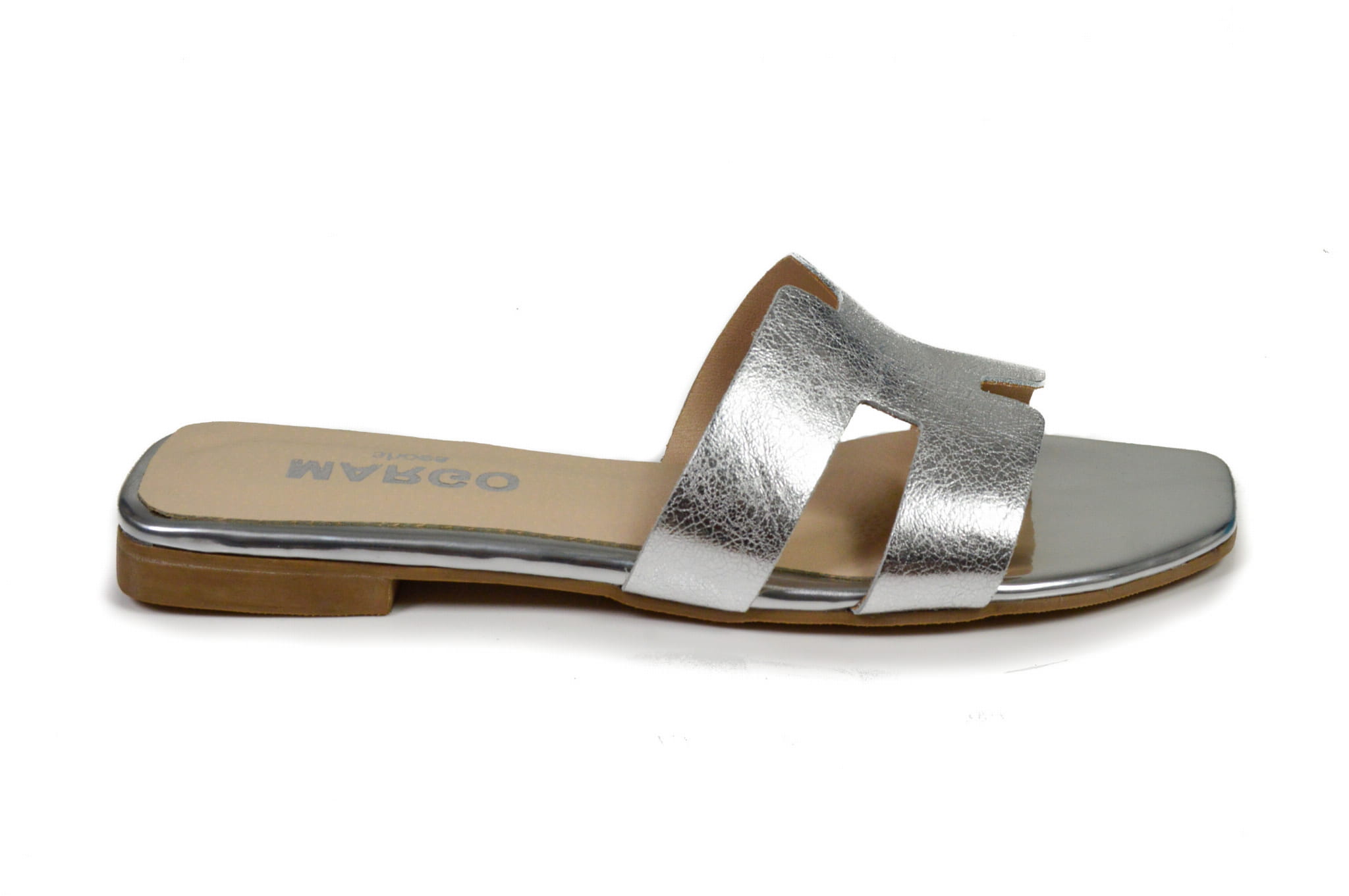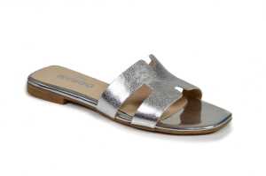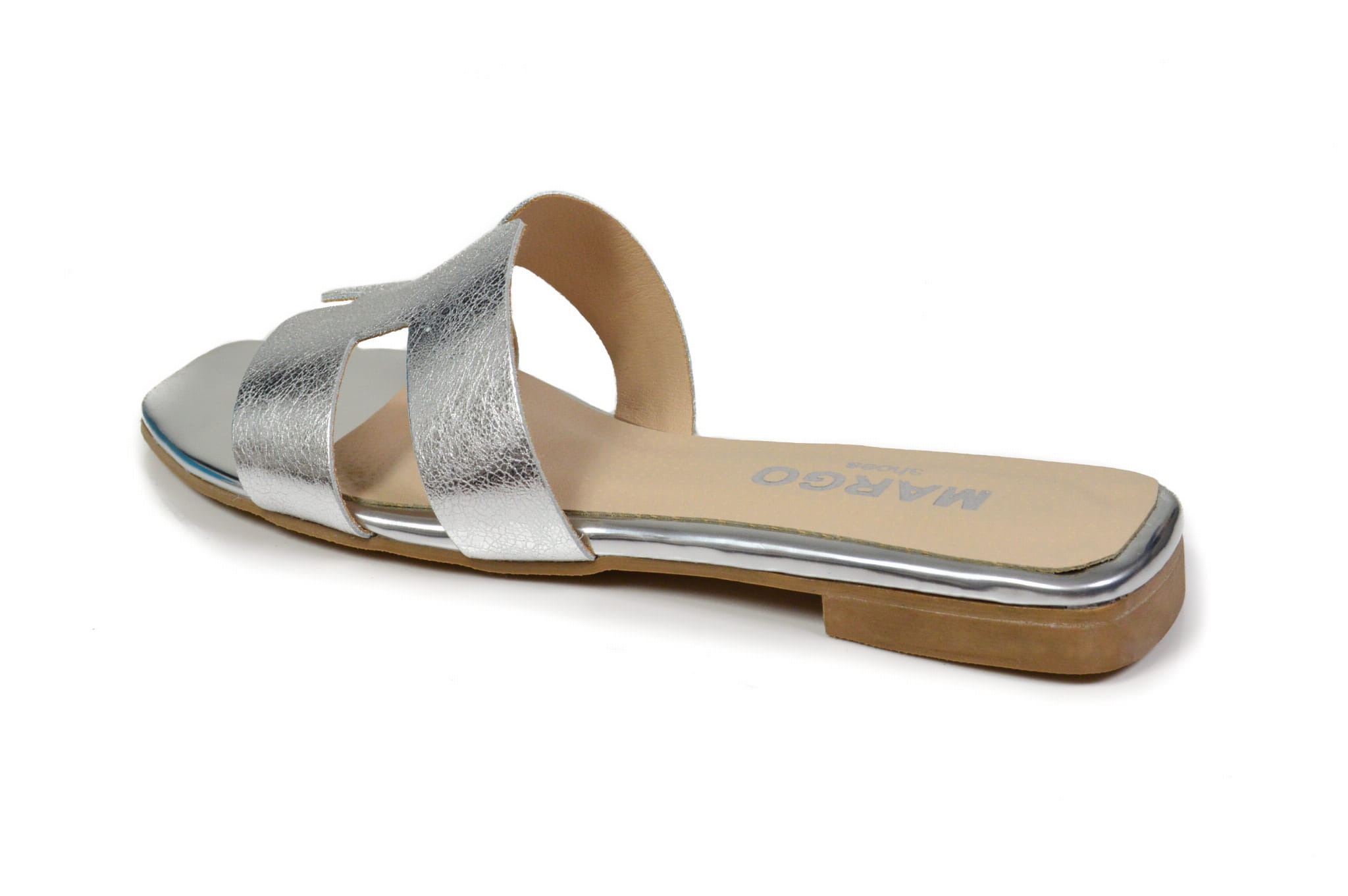 Srebrne klapki skórzane na płaskiej podeszwie