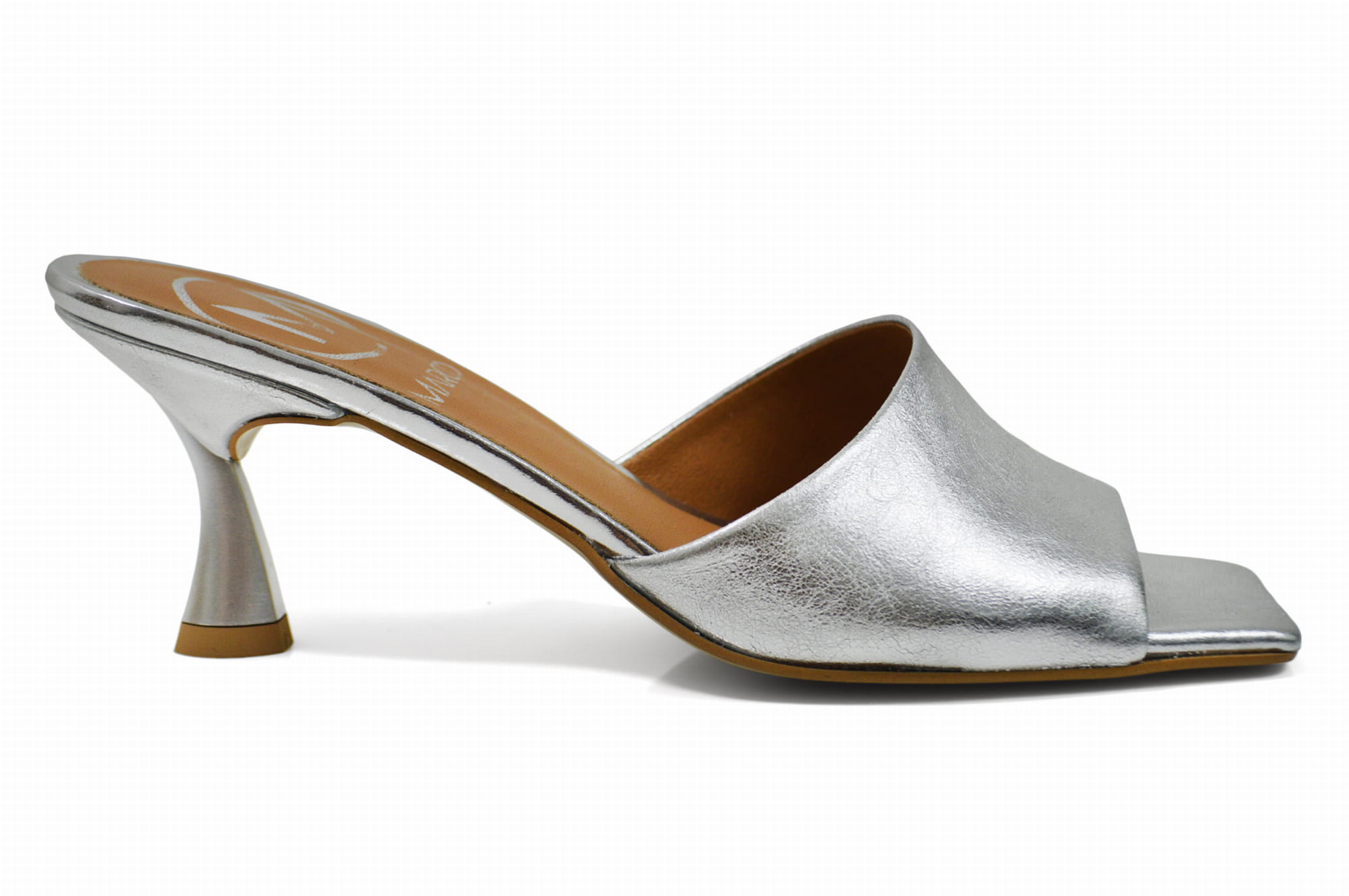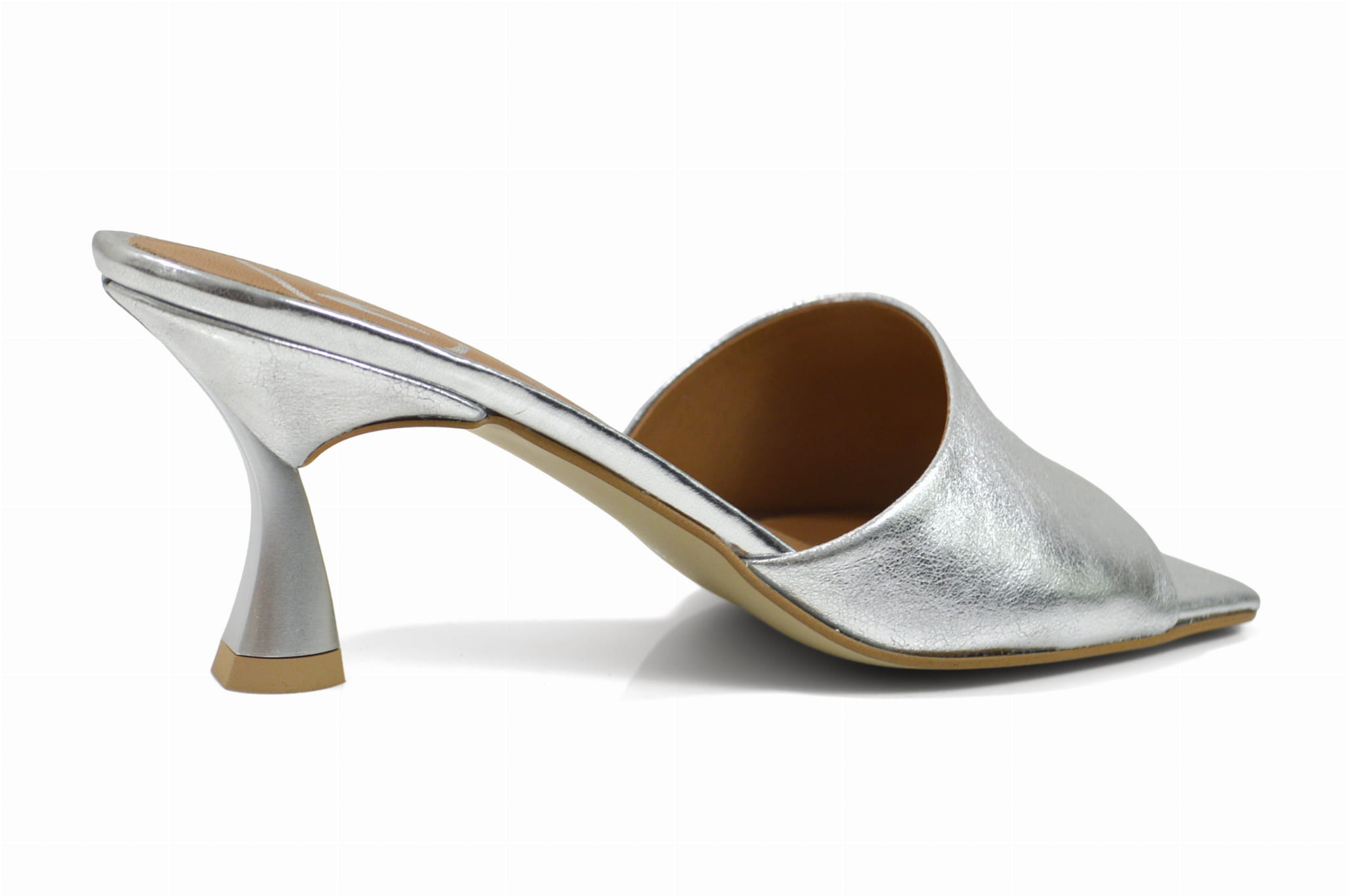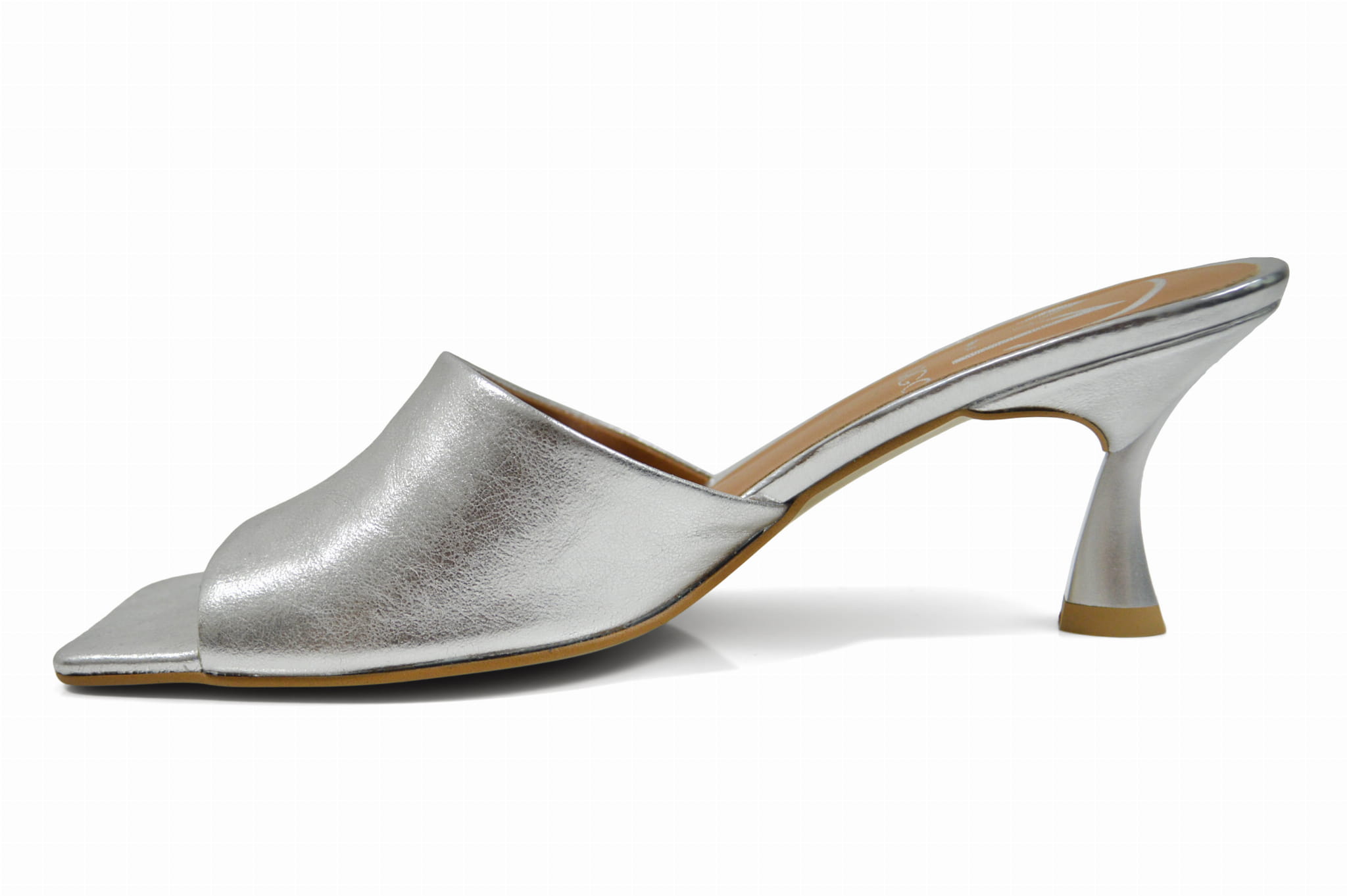 Srebrne klapki ze skóry niski obcas szpilka