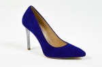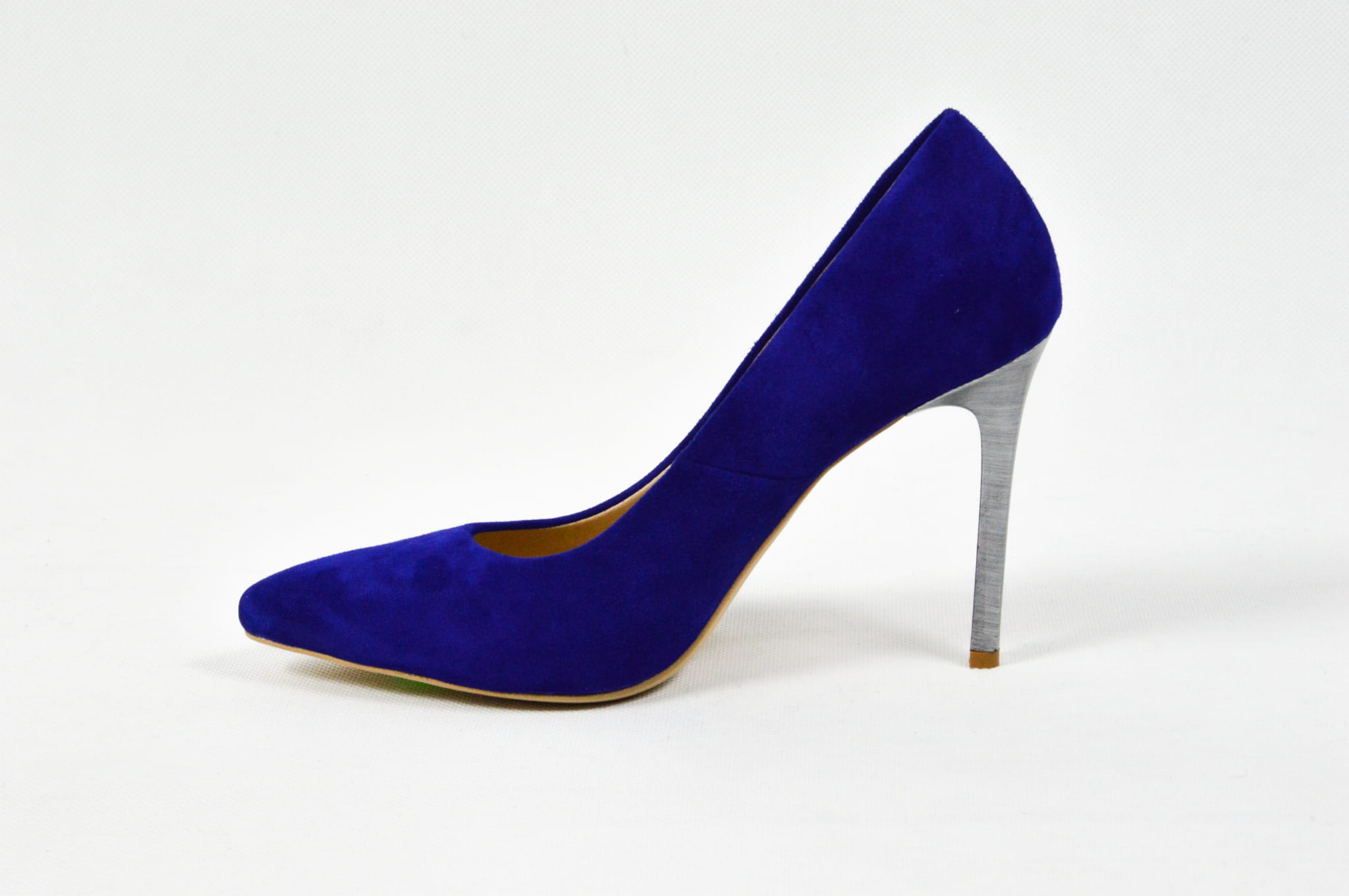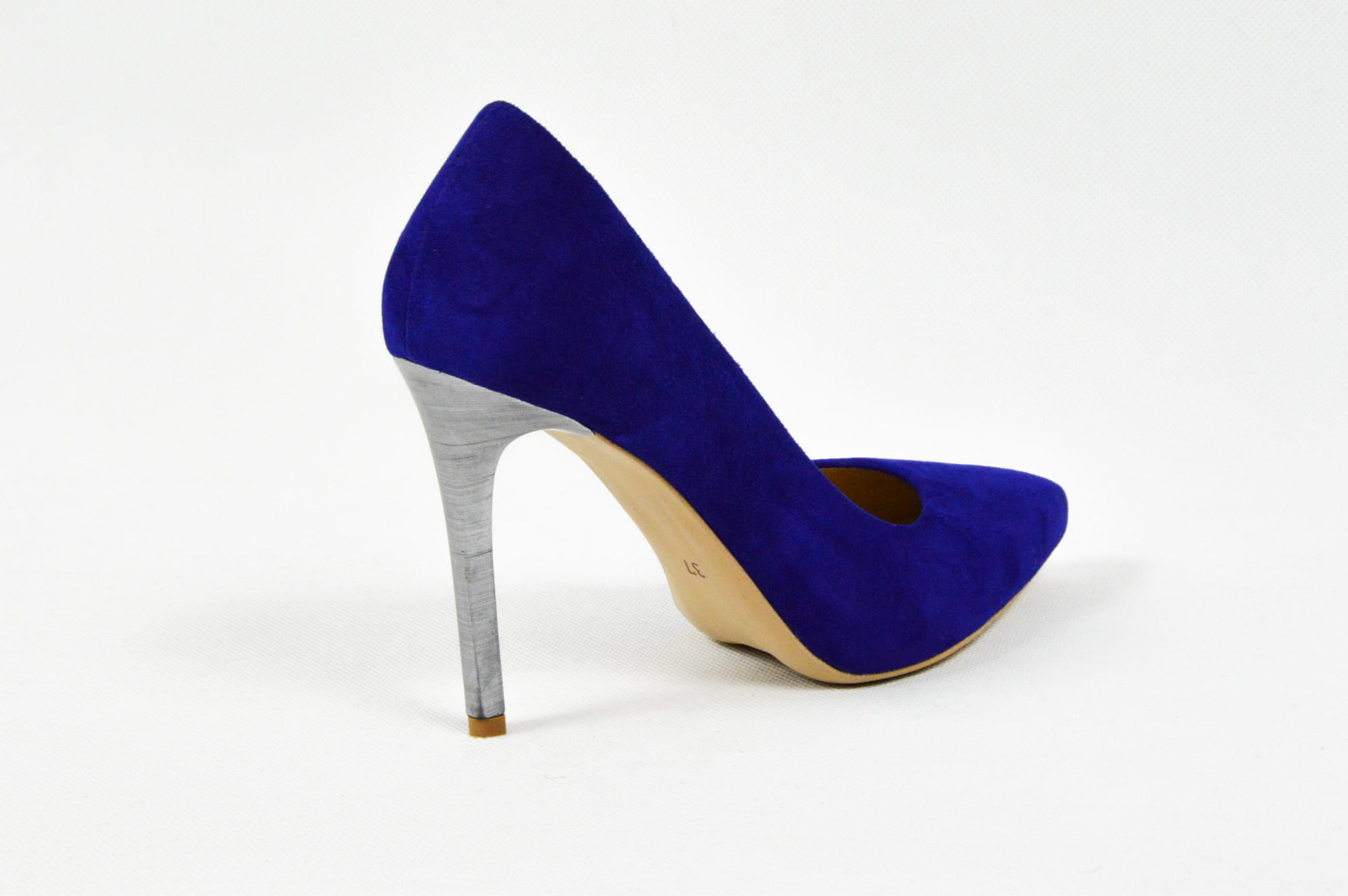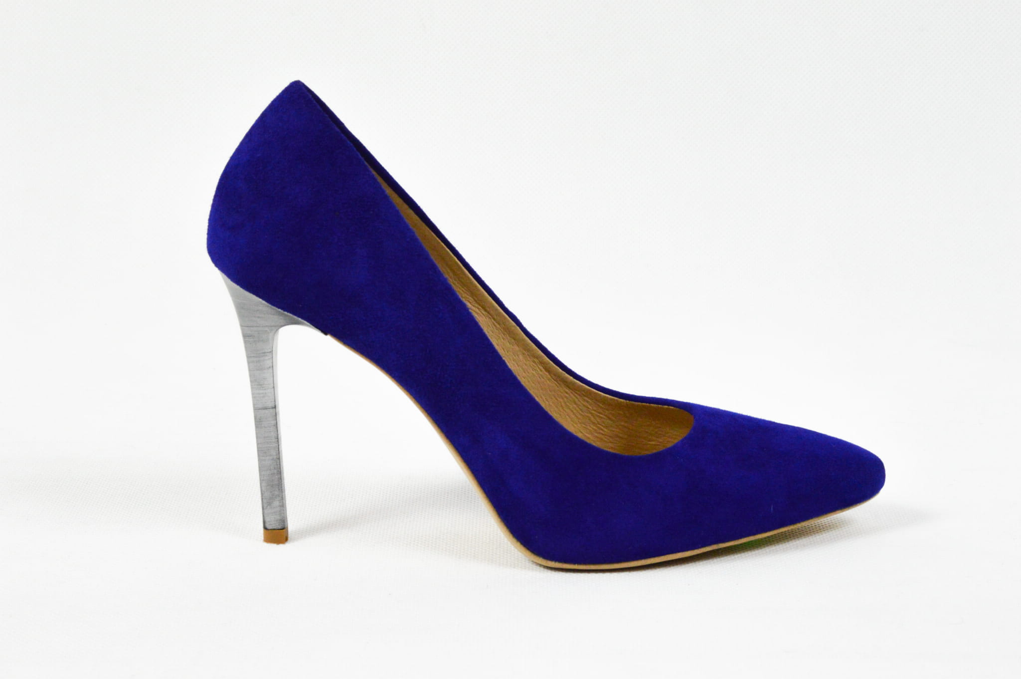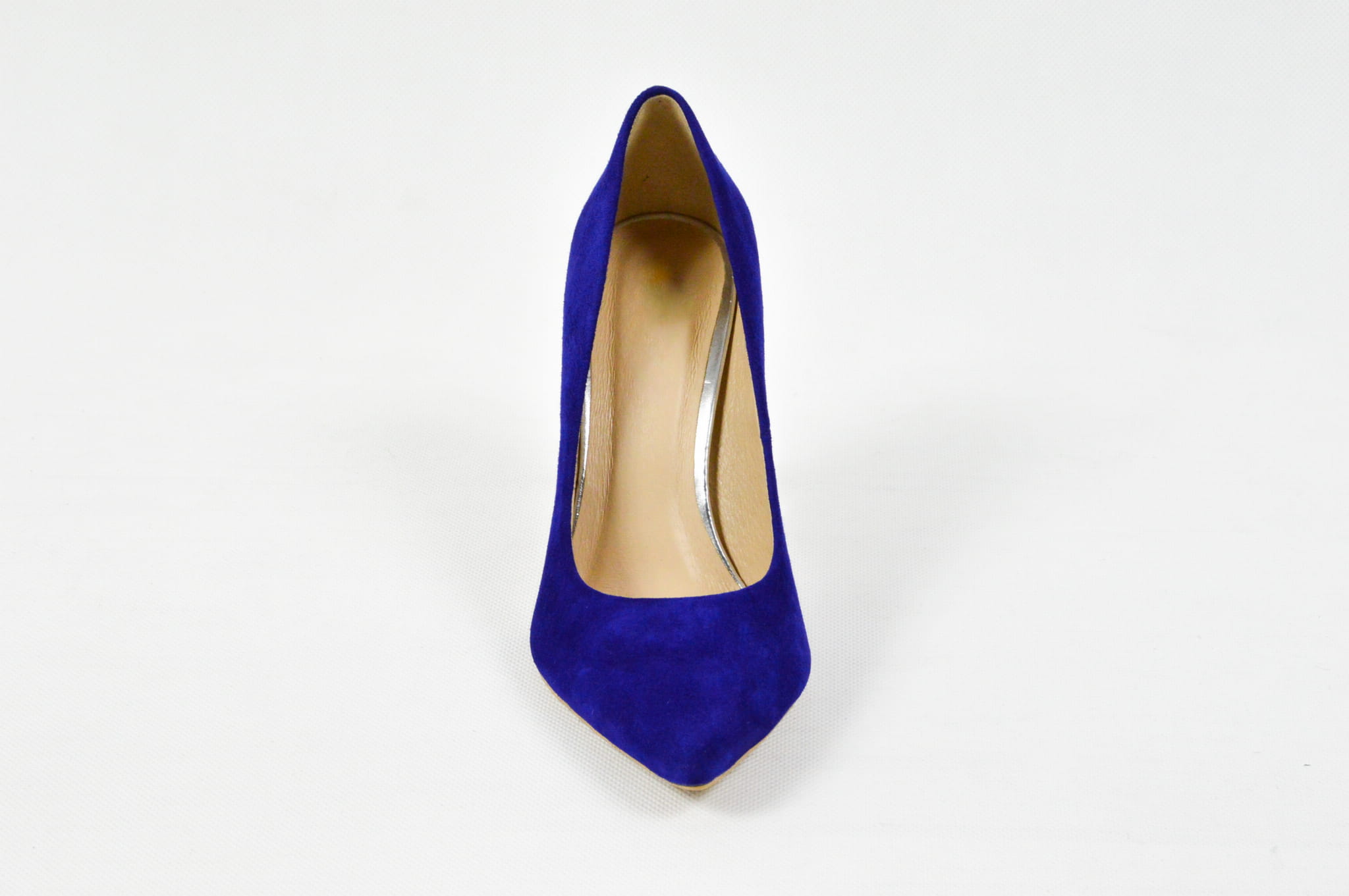 Szafirowe wysokie czółenka skórzane zamszowe na szpilce