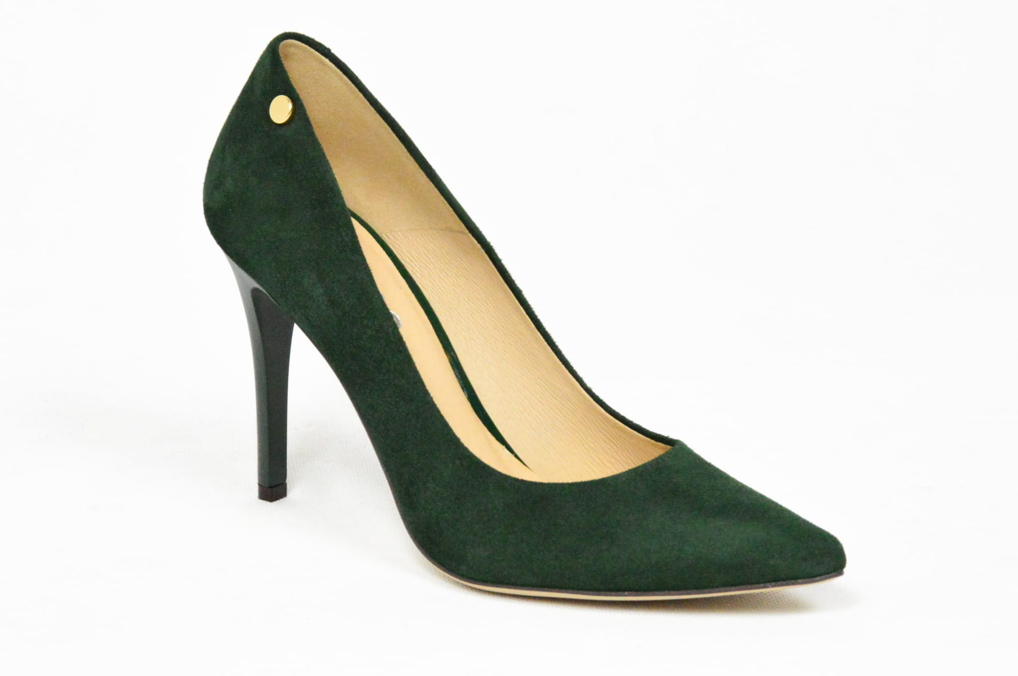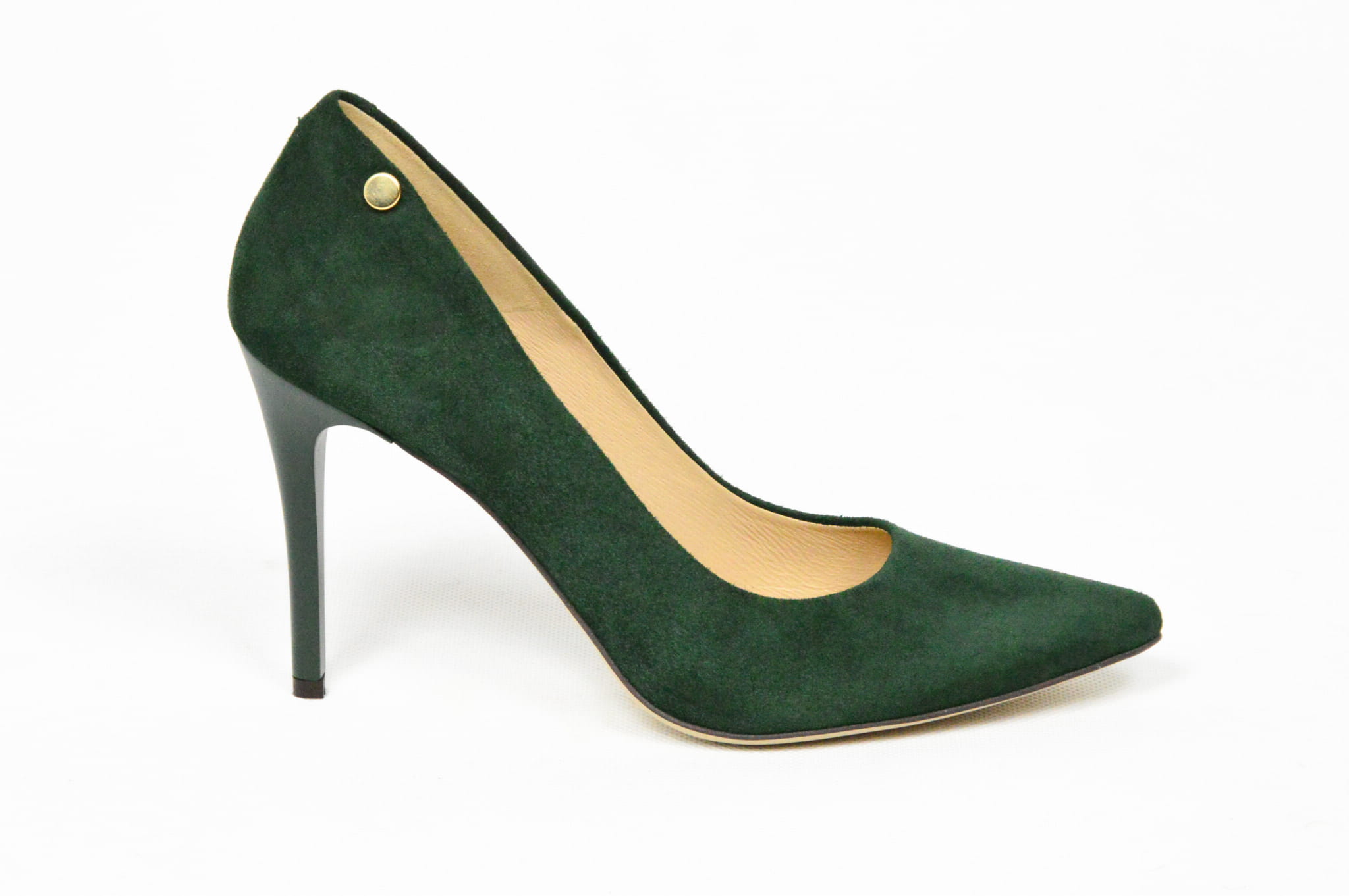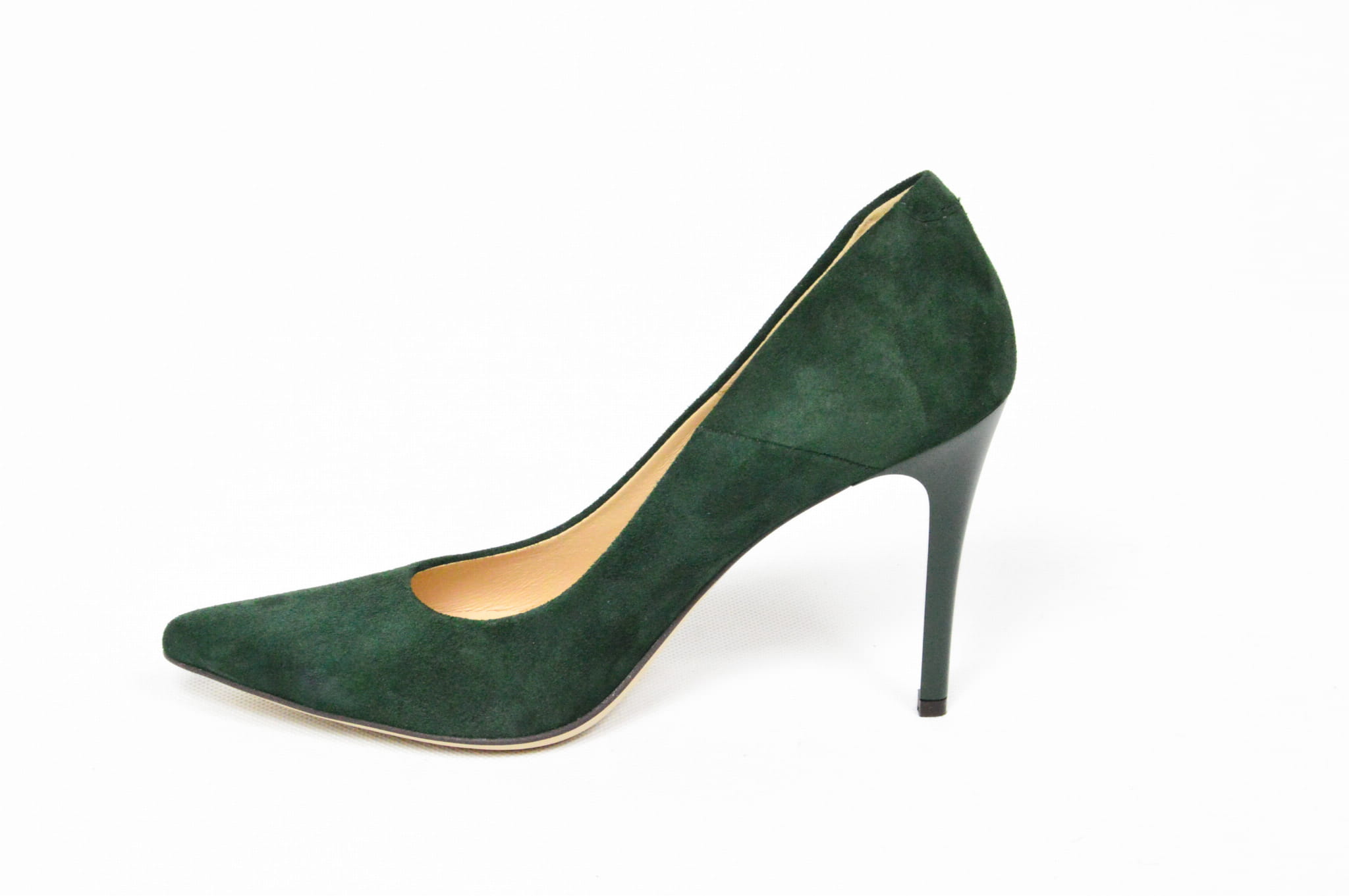 Zielone czółenka skórzane zamszowe na szpilce