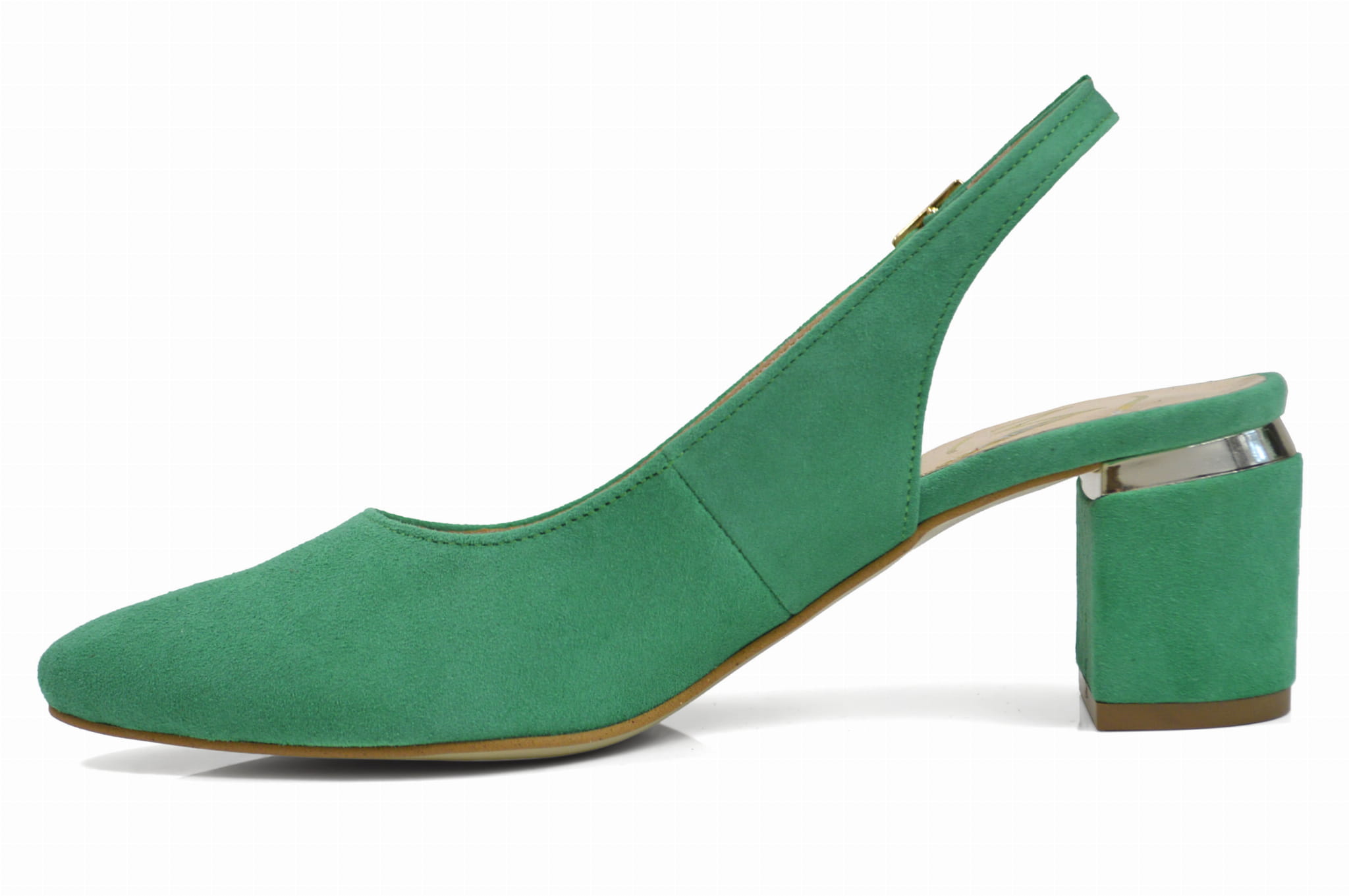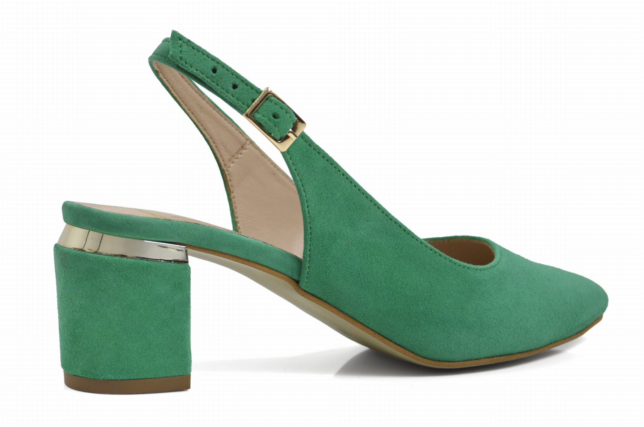 Szmaragdowe czółenka skórzane bez pięty z obcasem typu klocek od polskiej marki MargoShoes to połączenie wyjątkowej klasy z modną ekstrawagancją. Ich intensywny kolor przyciąga spojrzenia, podczas gdy wysokiej jakości skóra zapewnia nie tylko stylowy wygląd, ale także wygodę noszenia przez cały dzień. Unikatowy krój dodaje im nowoczesności i lekkości, podczas gdy solidny obcas typu klocek gwarantuje stabilność i pewność kroku. Te szmaragdowe czółenka są idealnym wyborem dla kobiet, które pragną wyróżnić się z tłumu i podkreślić swój unikalny styl w każdej sytuacji, od spotkań towarzyskich po wieczorne wyjścia na miasto.