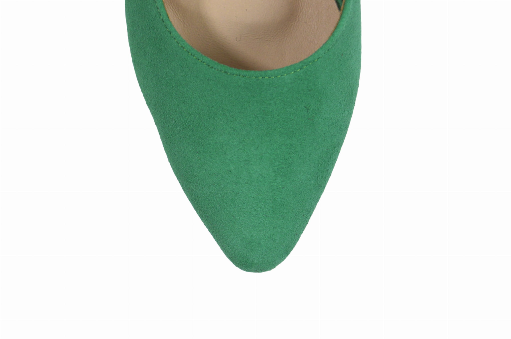 Zielone szmaragdowe czółenka skórzane bez pięty obcas klocek