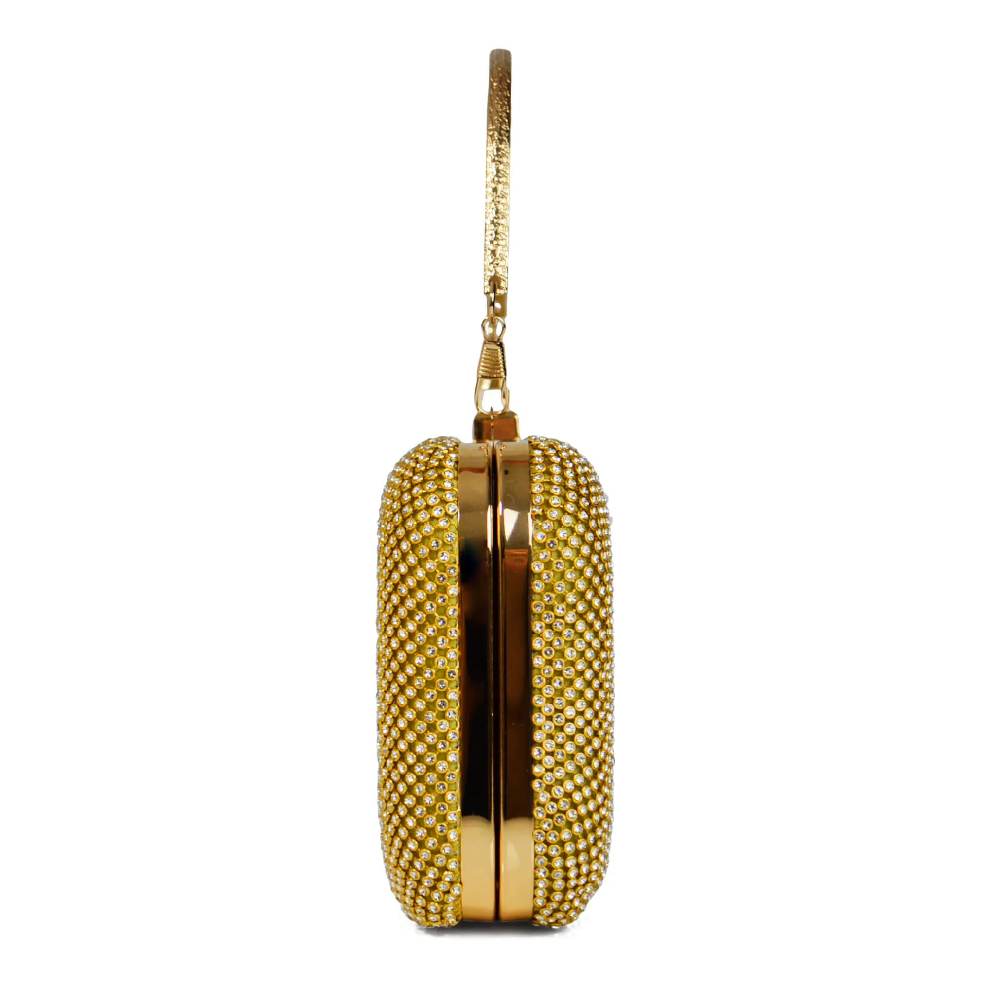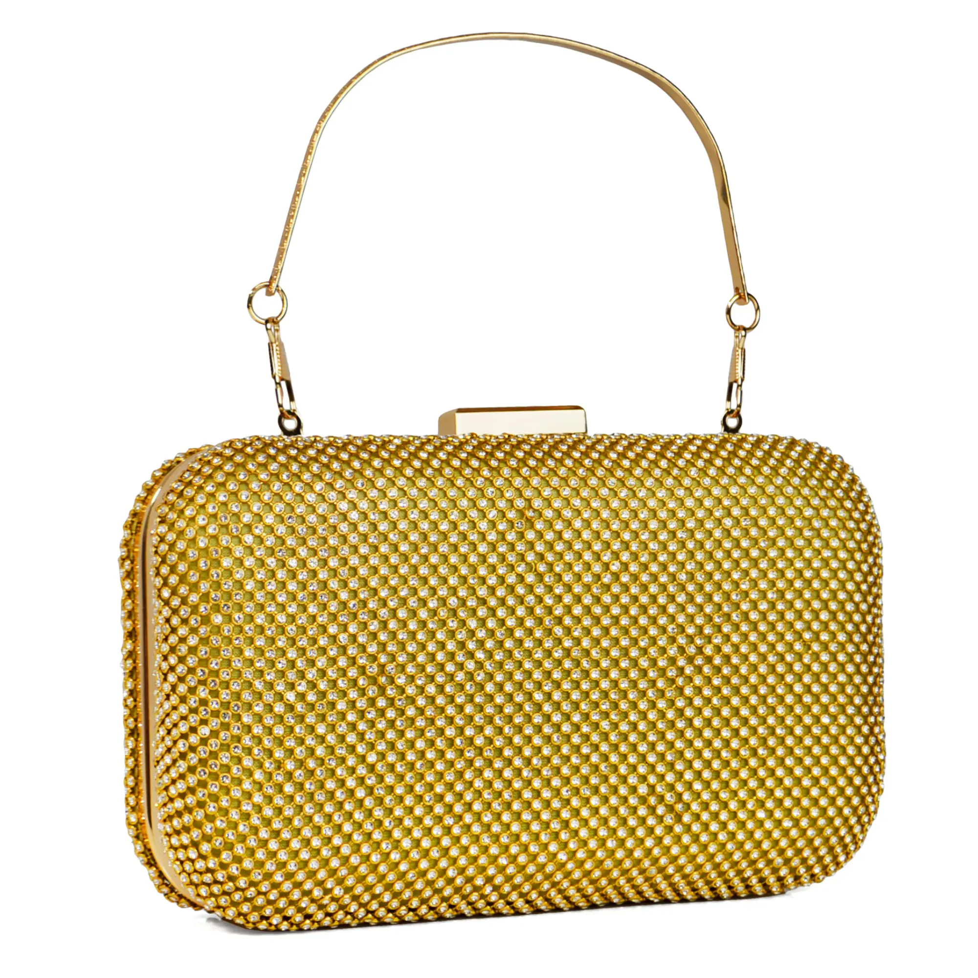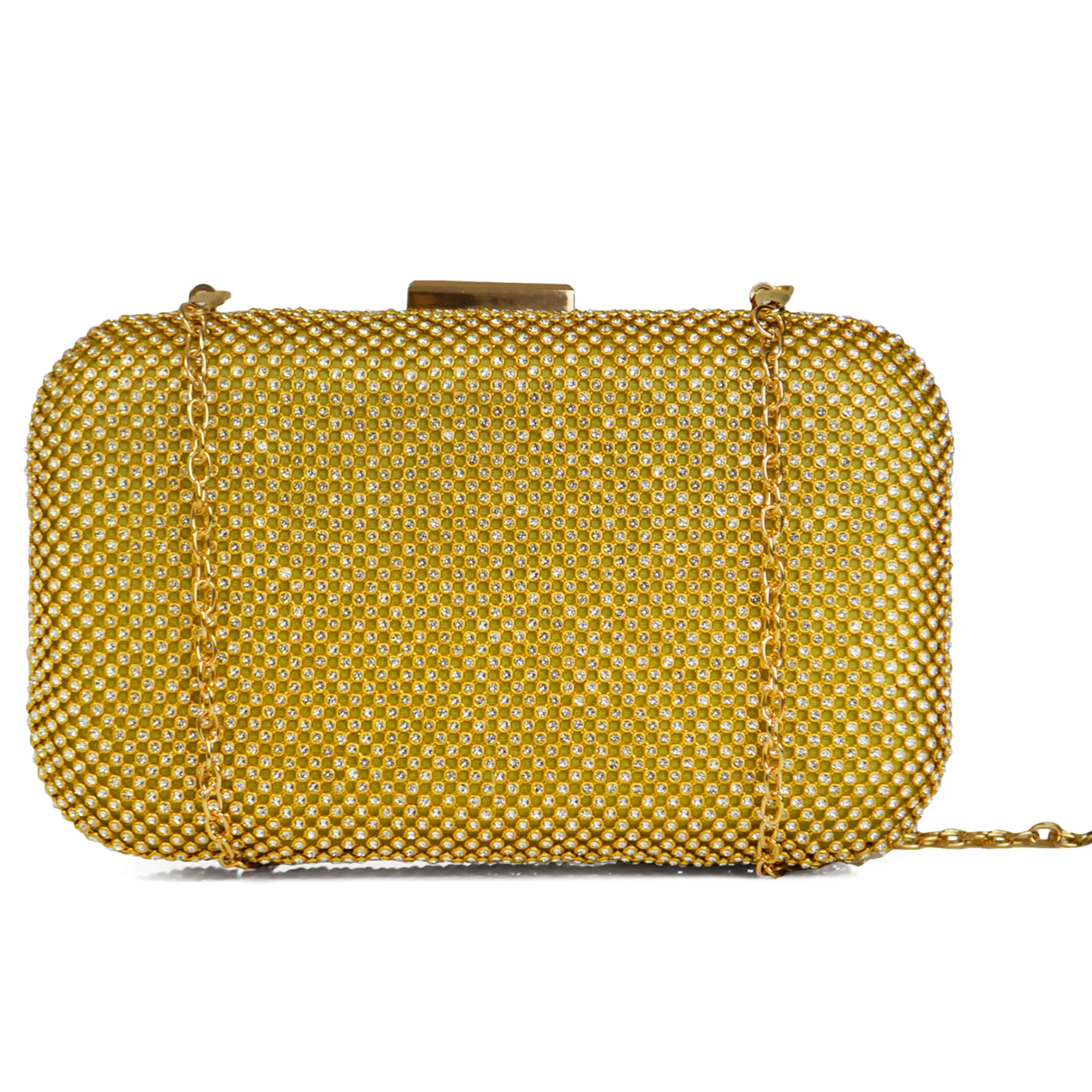 Elegancka złota mała torebka kopertówka z urokliwymi cyrkoniami - idealny dodatek, który zapewni Ci olśniewający wygląd na każdą okazję! Wykonana z wysokiej jakości złotego poliestru, ta torebka łączy w sobie unikalny styl z funkcjonalnością. Jej złocisty odcień nadaje jej wyjątkowego blasku, przyciągając uwagę i podkreślając Twój wyjątkowy gust. Dzięki praktycznemu zapięciu na zatrzask, Twoje najważniejsze przedmioty będą zawsze bezpieczne, zachowując jednocześnie elegancki wygląd. Wewnętrzna komora na zatrzask ułatwia organizację, umożliwiając przechowywanie wszystkich niezbędnych drobiazgów. Metalowa rączka o długości 25 cm dodaje torebce wyjątkowego uroku i stylu. Złoty łańcuch o długości 118 cm pozwala na różne sposoby noszenia torebki, zapewniając komfort i swobodę ruchów. Dla kobiet ceniących sobie wyjątkowy design i praktyczność, nasza złota mała torebka kopertówka z białymi kamieniami to niezbędny element każdej garderoby!
