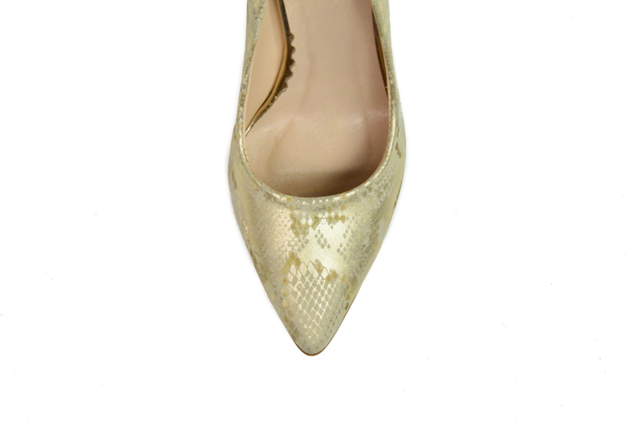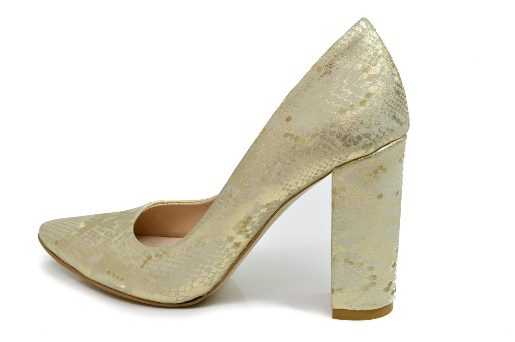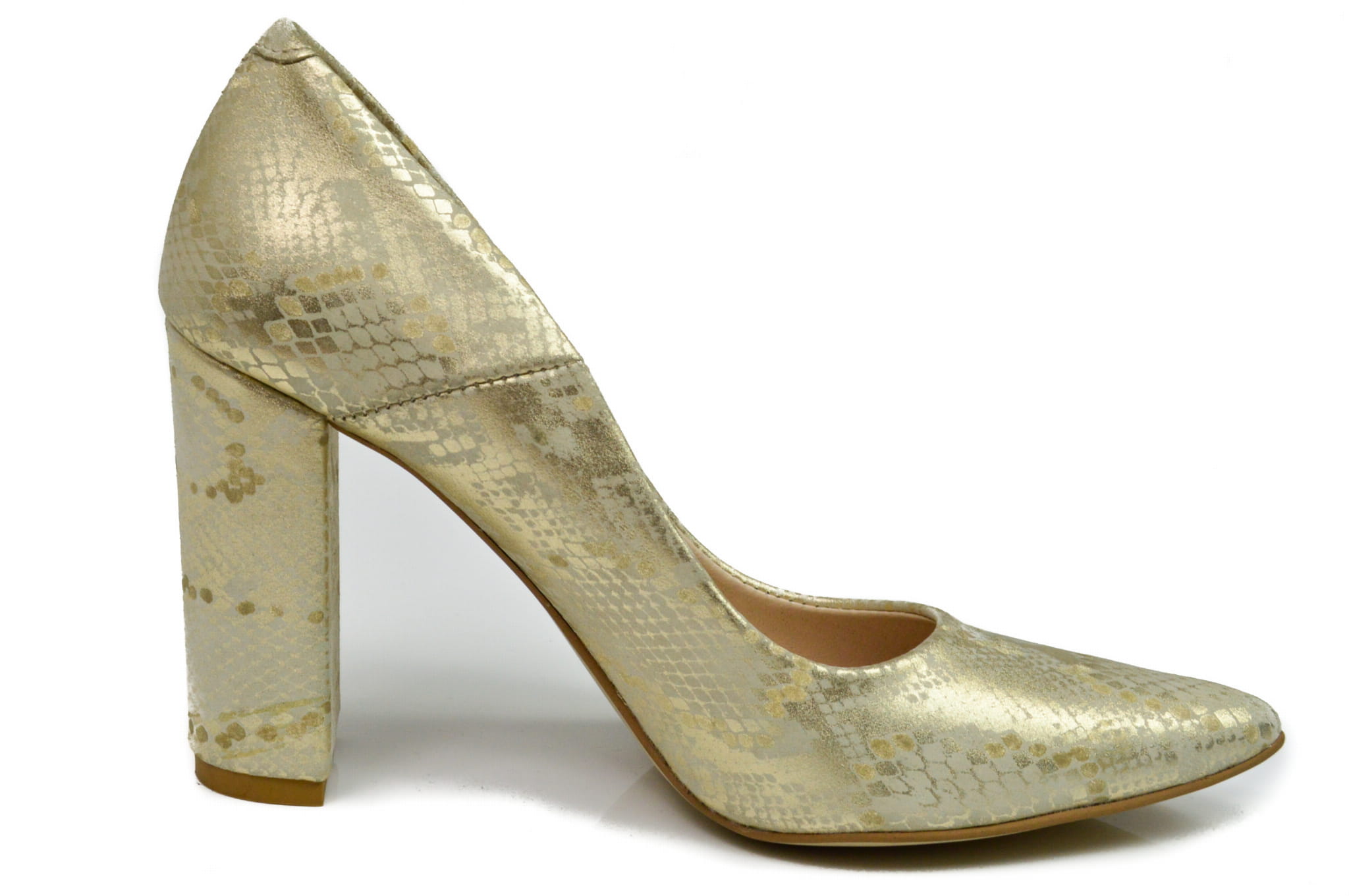 Skórzane czółenka złote na słupku w atrakcyjnej cenie – tylko w MargoShoes!