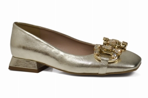 Złote mokasyny skórzane damskie niski obcas