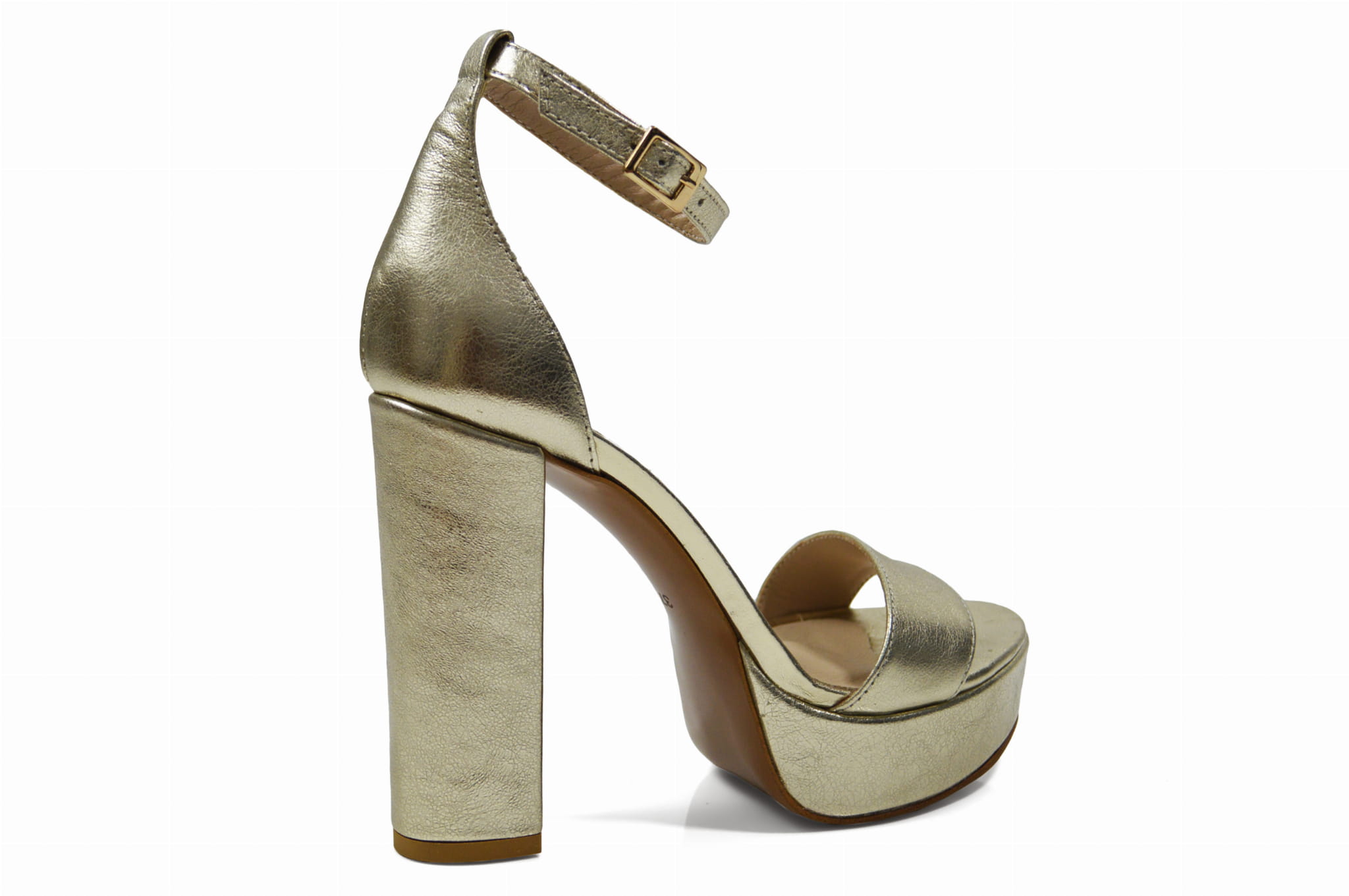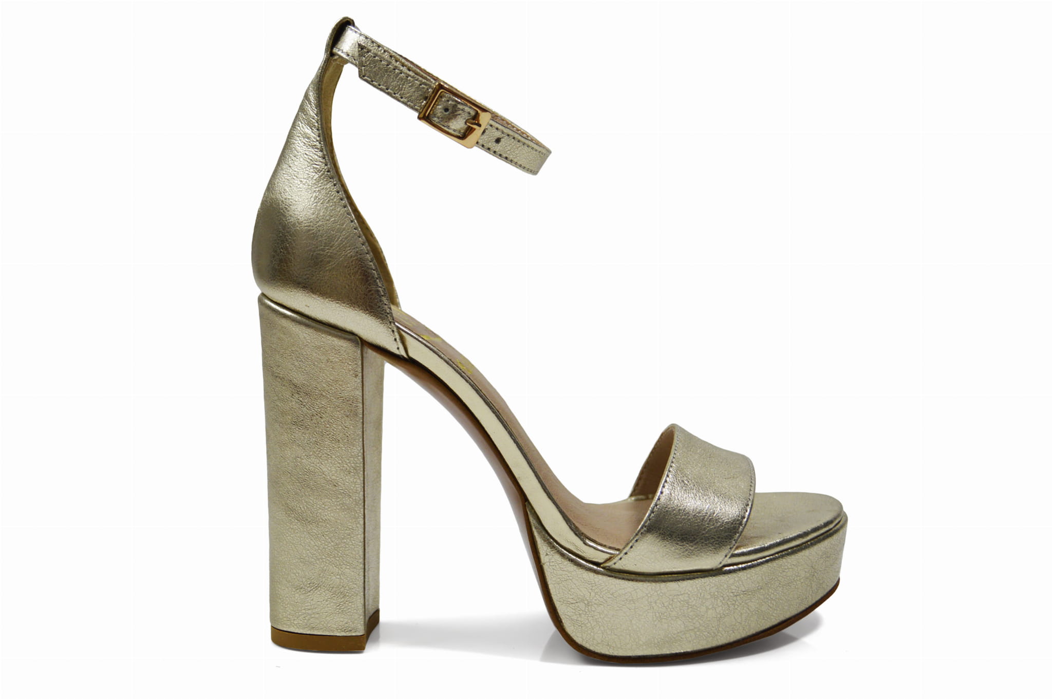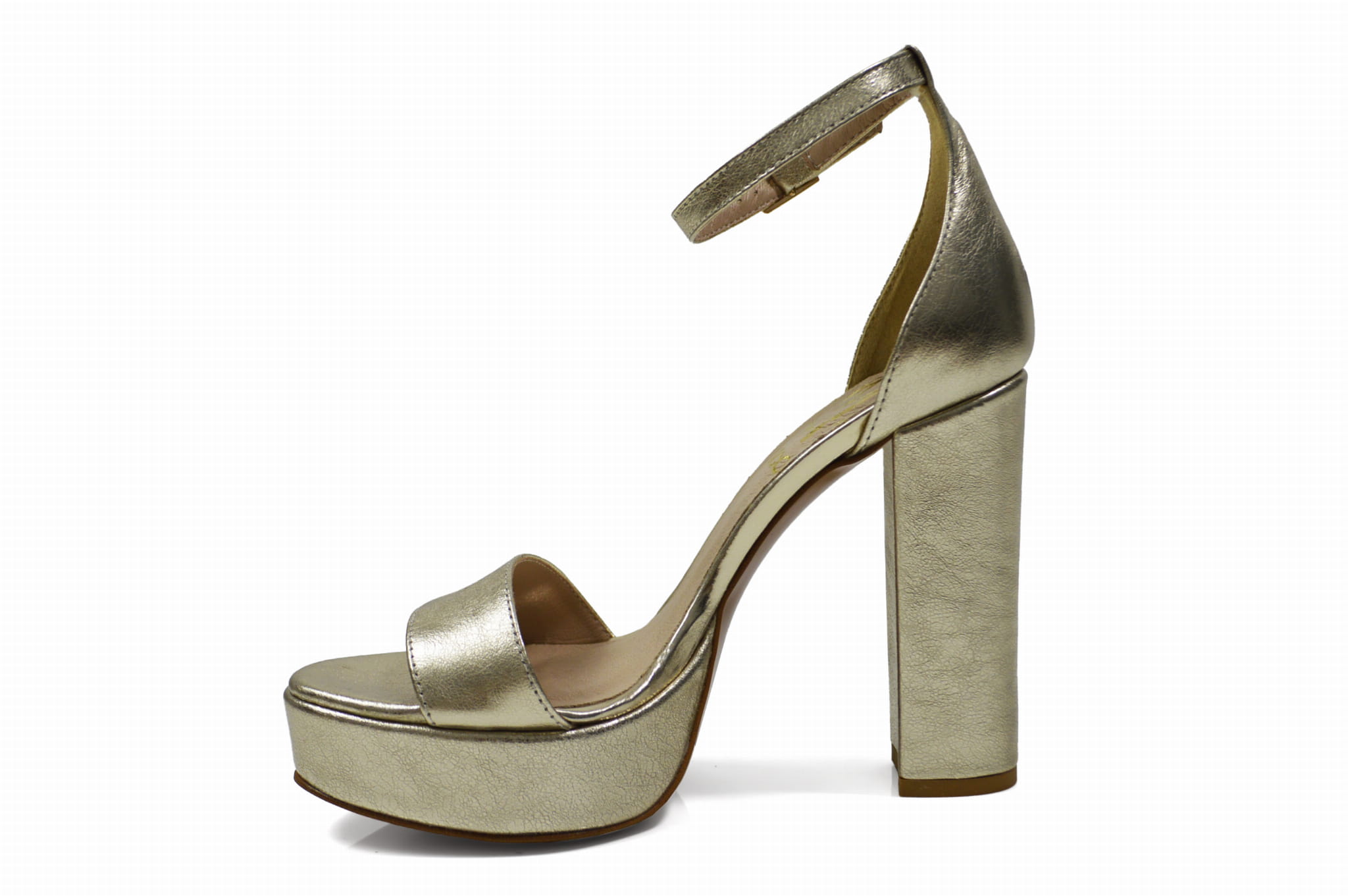 Rozświetl swój styl z naszymi złotymi wysokimi sandałkami skórzanymi na słupku z 3 cm platformą. Wykonane z najwyższej jakości skóry, te sandałki nie tylko emanują luksusem, ale także zapewniają stabilność i pewność kroku. Ich elegancki design sprawia, że są idealne na wieczorne wyjścia i specjalne okazje. Złote wysokie sandałki skórzane to połączenie wyrafinowanego wyglądu i doskonałego dopasowania, które sprawią, że staną się one nieodłącznym elementem Twojej garderoby.