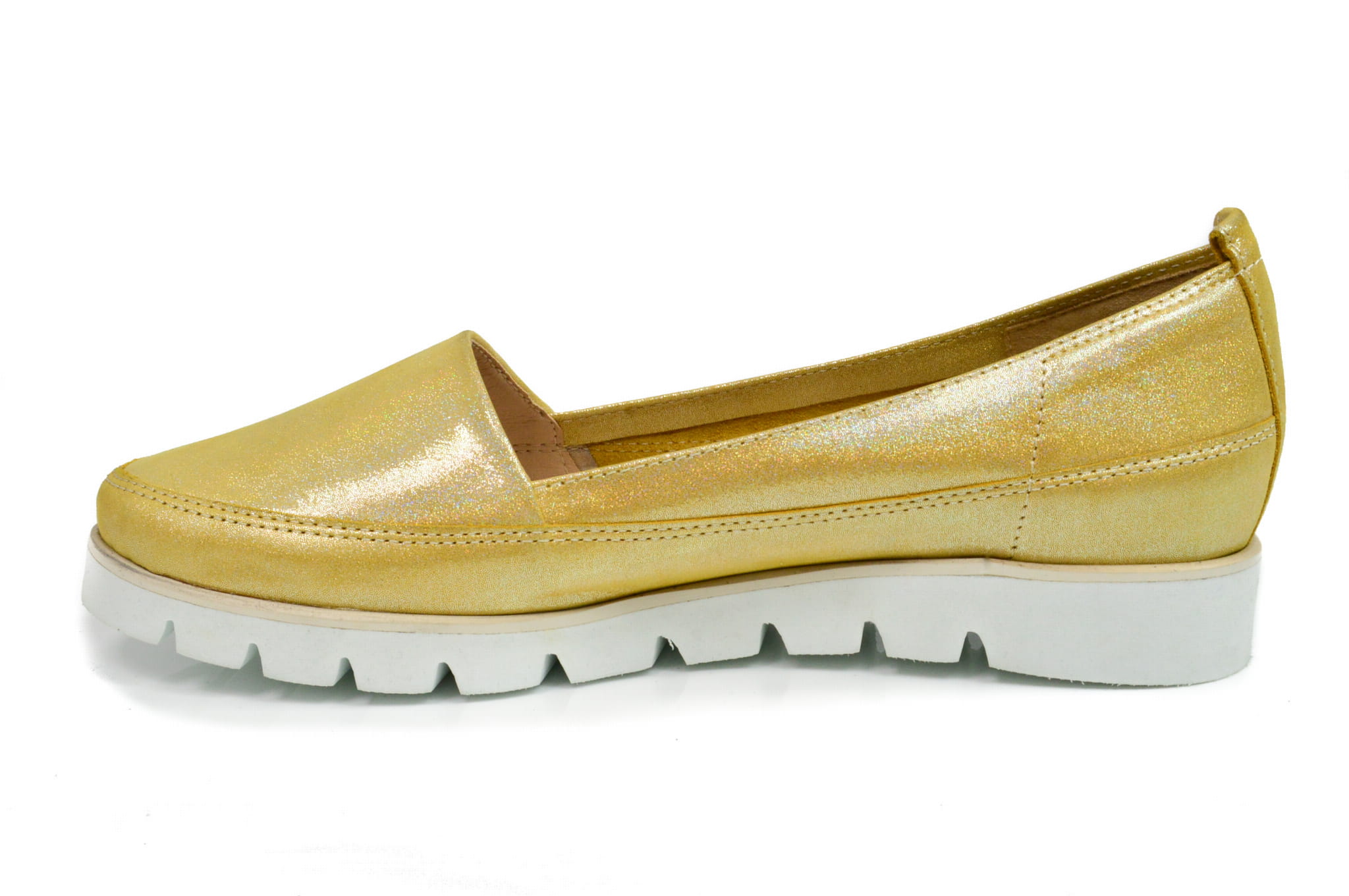 Żółte mokasyny – baleriny wykonane w całości z miękkiej skóry naturalnej – to propozycja polskiej marki MargoShoes, idealna dla Pań pragnących wyróżnić się z tłumu! Delikatne podwyższenie zapewni komfortową postawę i prawidłowe ułożenie stopy. Wsuwane, wygodne baleriny również w środku wyłożone są delikatną, naturalną skórką, gwarantując komfort noszenia przez wiele godzin.